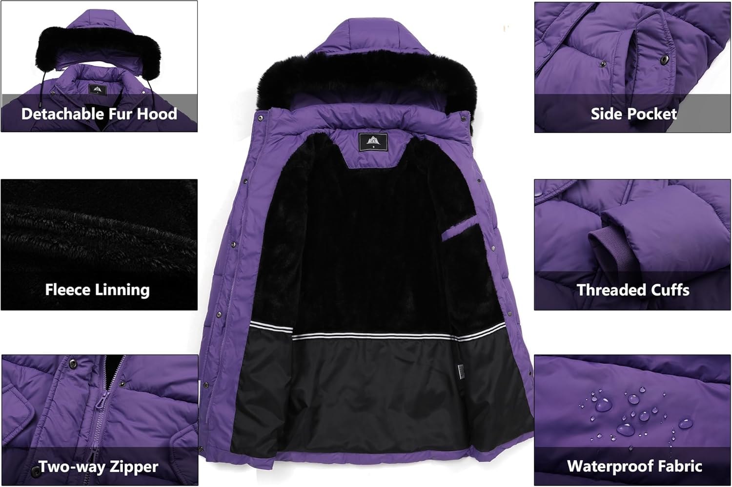 Waterproof Women’s Snow Jacket – Brave rain and snow effortlessly! This long puffer jacket features a detachable faux fur hood, secure pockets, and a fashionable design. Ideal for hiking, commuting, or urban adventures—stylish and functional