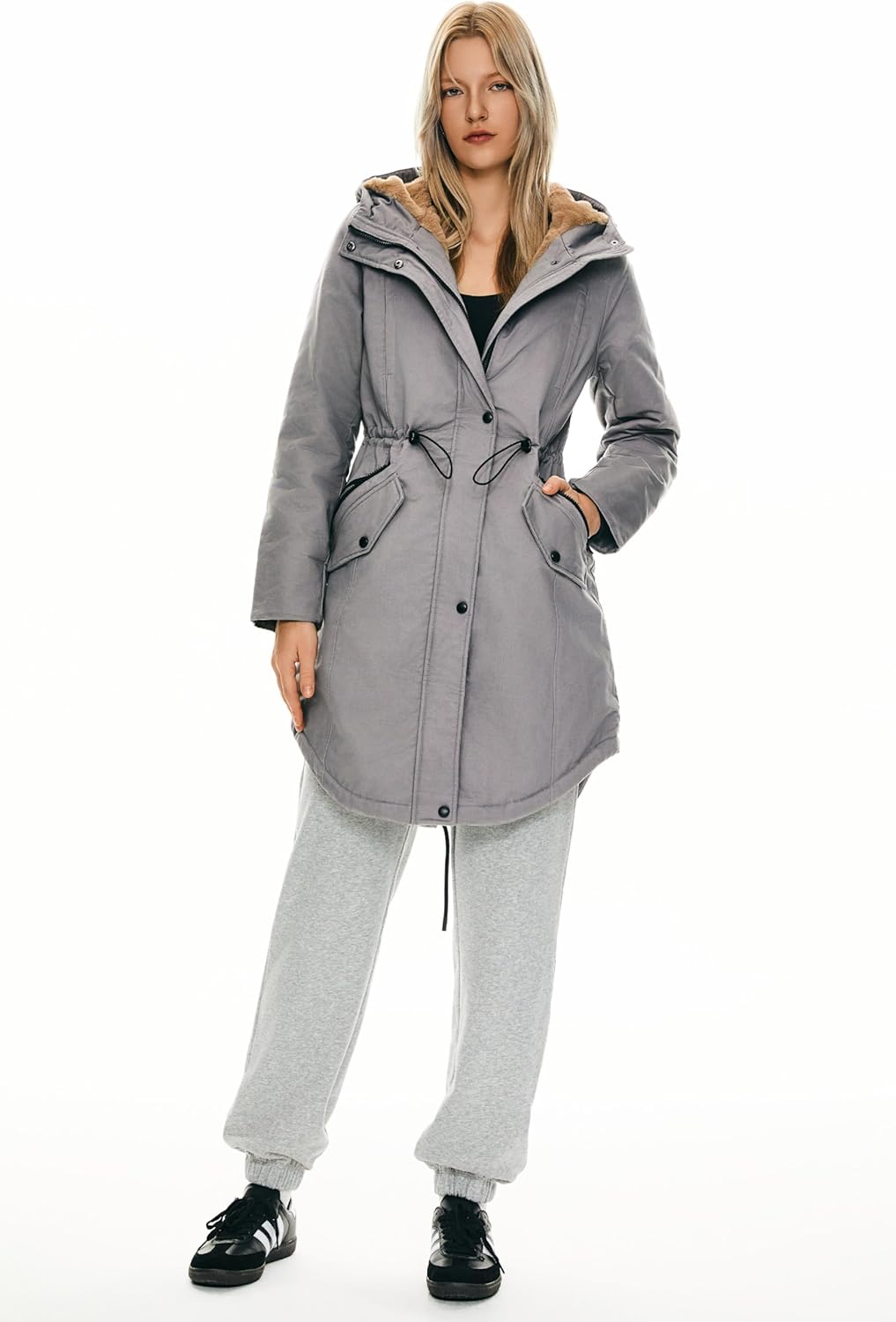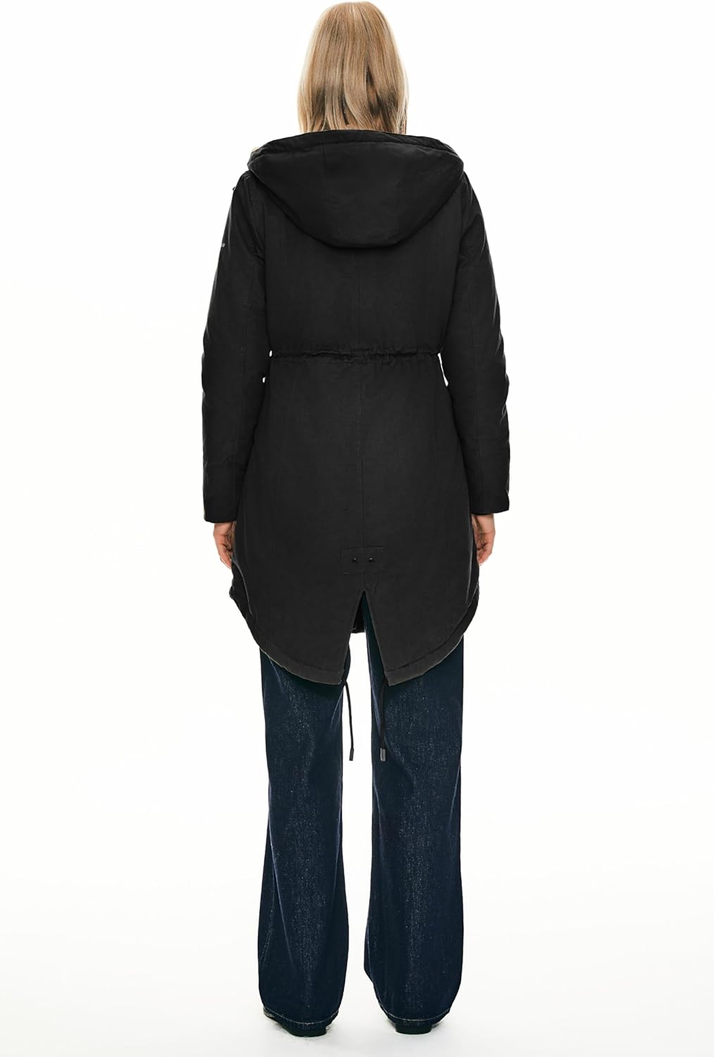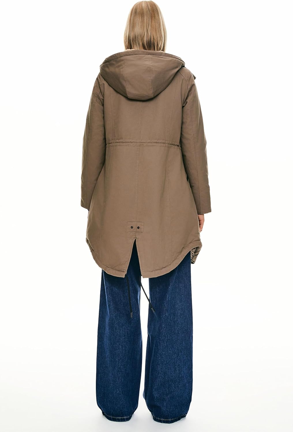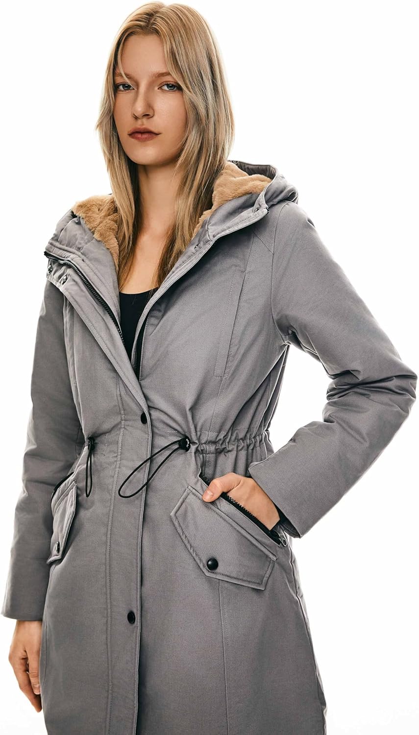 The drawstring of the waist is perfect to adjust the size and keep you warm. The hi-lo hem design of the bottom can make you look charming. And the drawstring of the bottom could change the jacket's shape to highlight women's elegance.