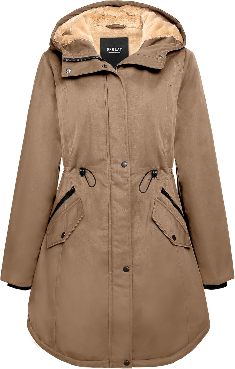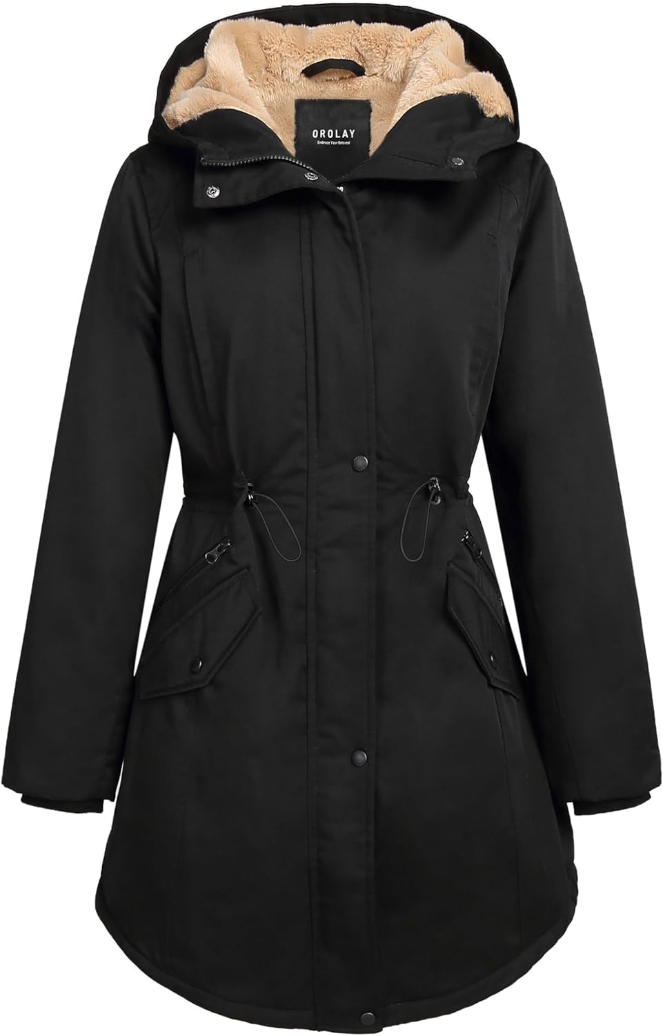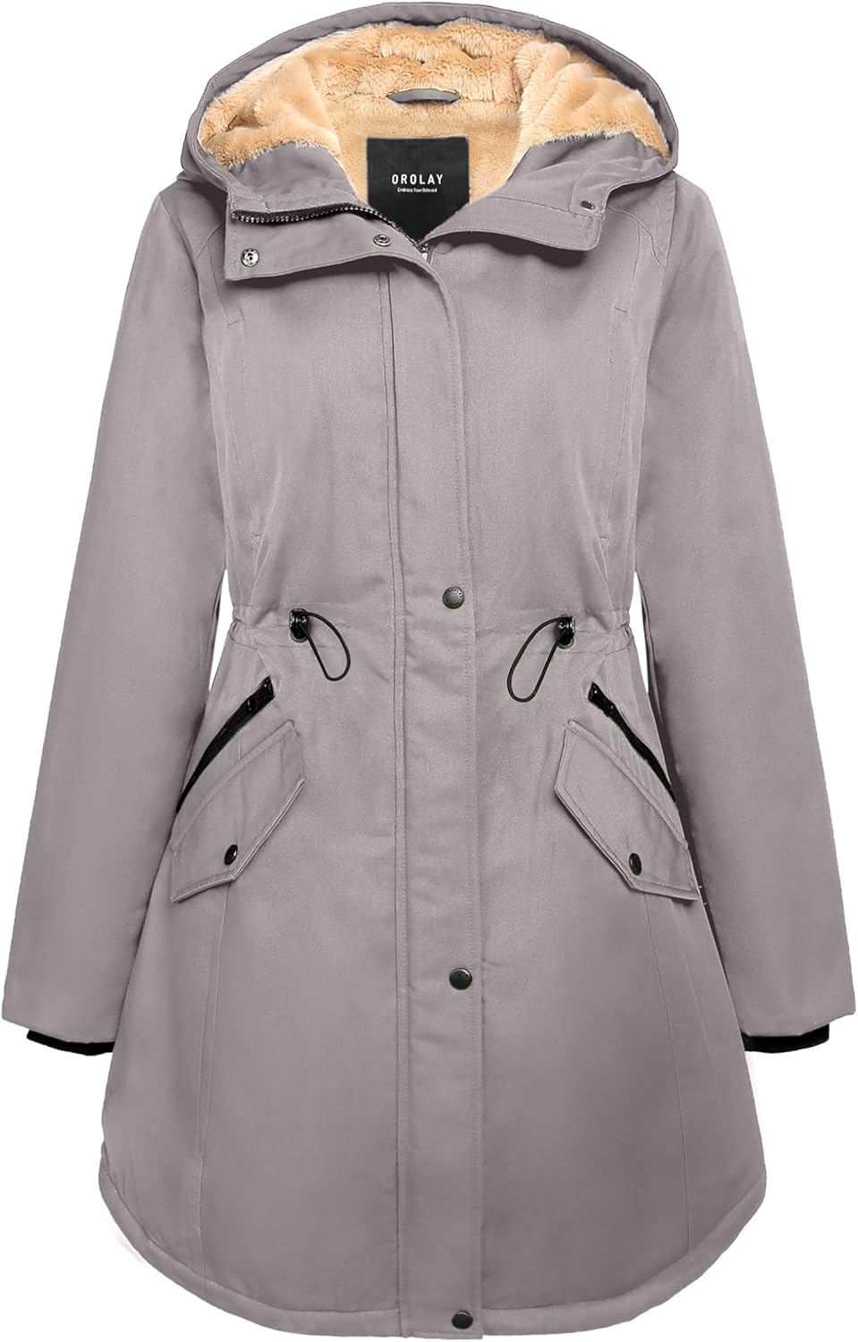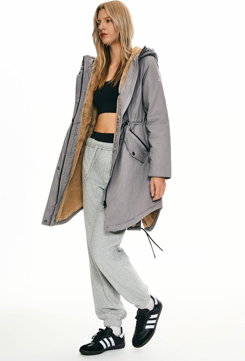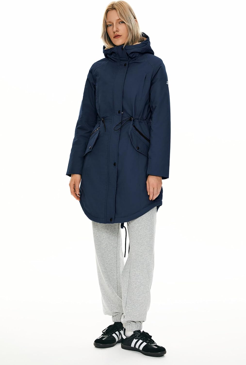 The drawstring of the waist is perfect to adjust the size and keep you warm. The hi-lo hem design of the bottom can make you look charming. And the drawstring of the bottom could change the jacket's shape to highlight women's elegance.