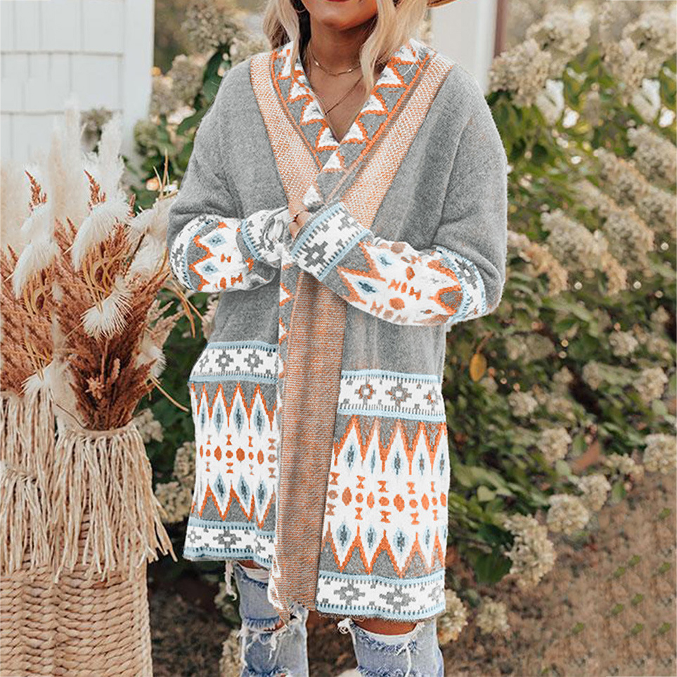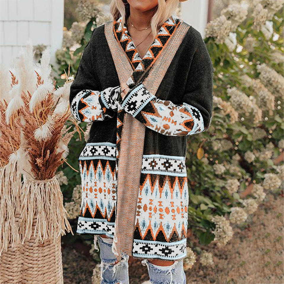 Retro Ethnic Geometric Jacquard Sweater Cardigan