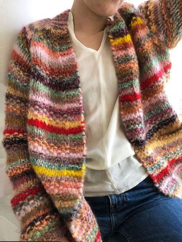 Vintage Tribal Rainbow Button Down Jacquard Comfy Sweater