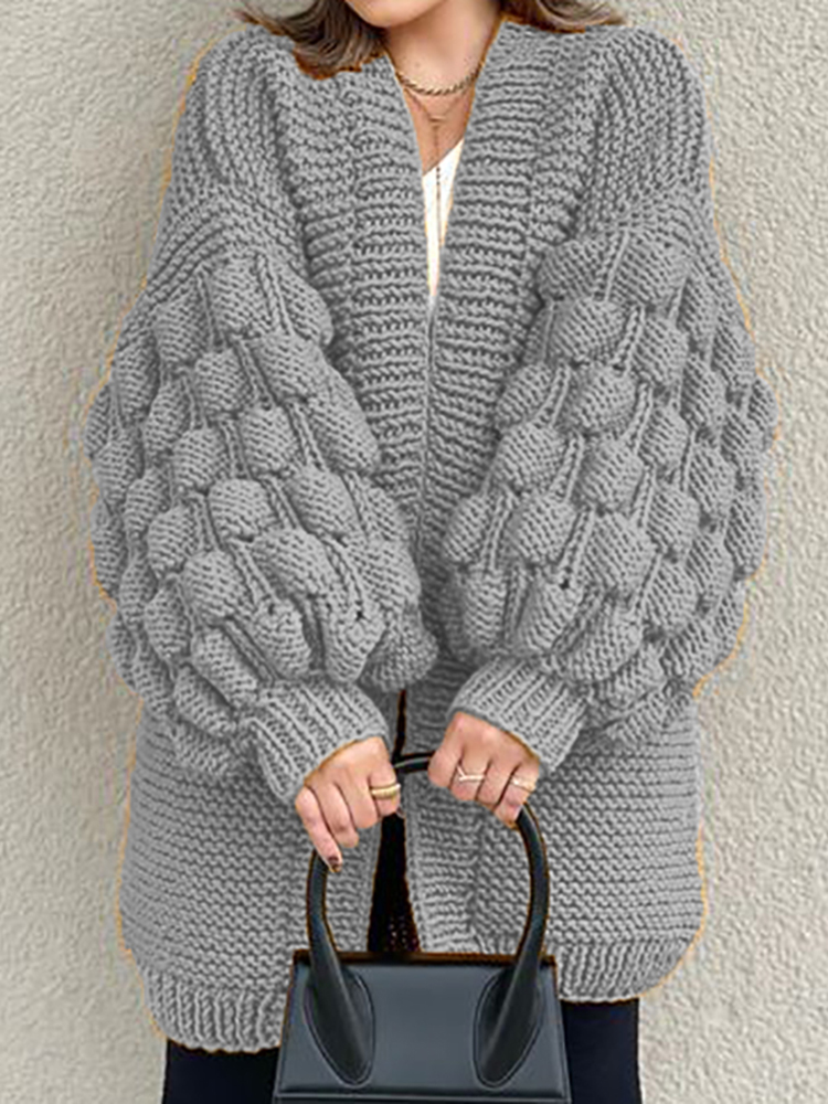 Retro Loose Puff Sleeves Thick Wool Knitted Cardigan