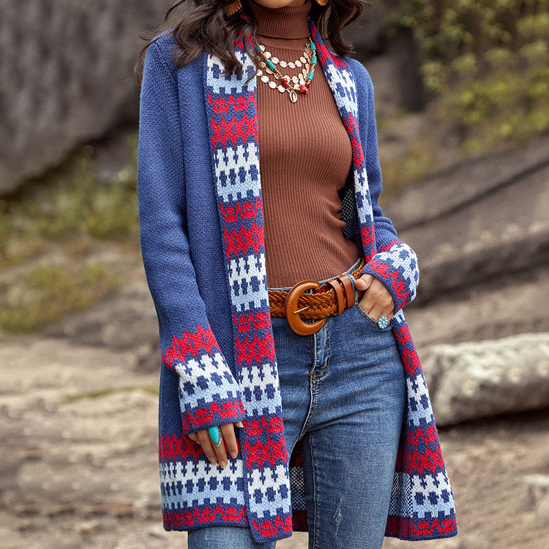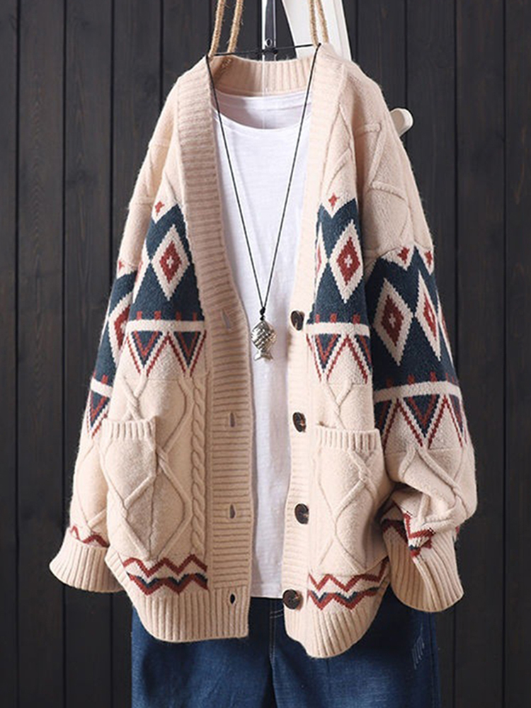 Vintage Contrast Jacquard Sweater Cardigan