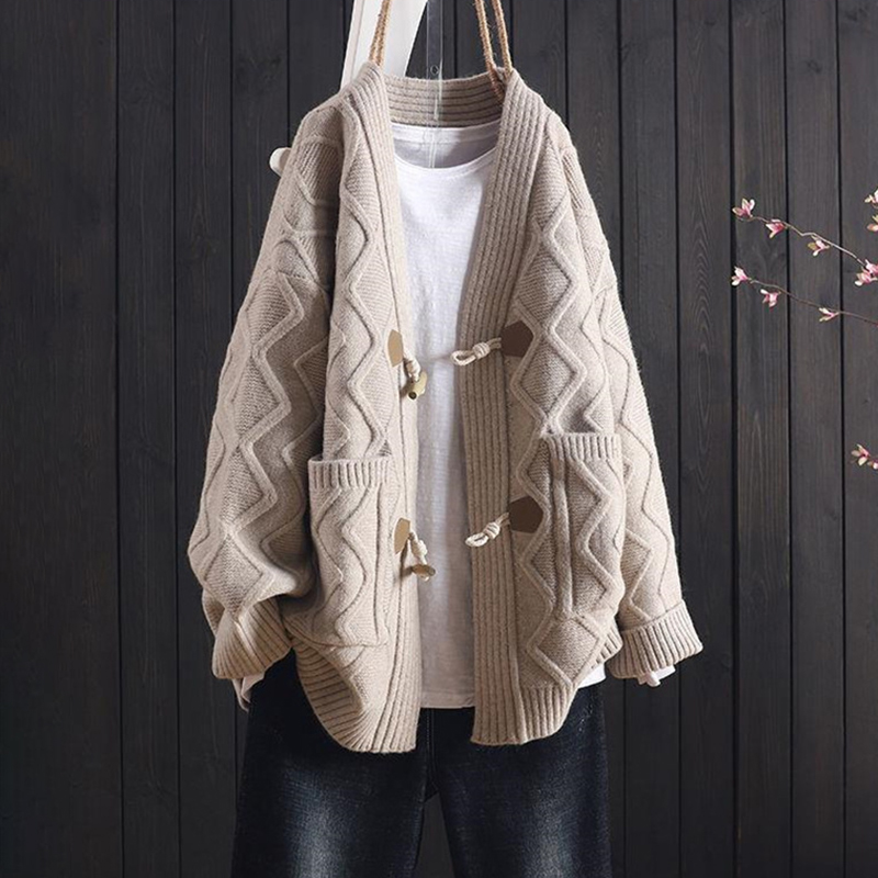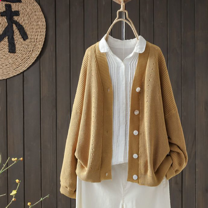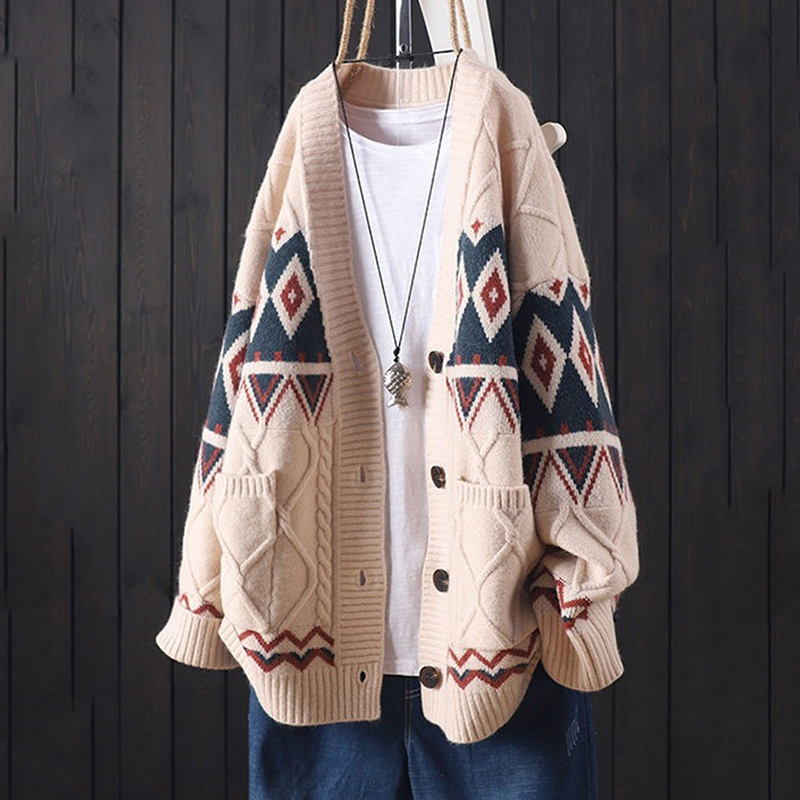 Retro V-Neck Loose Knitted Cardigan
