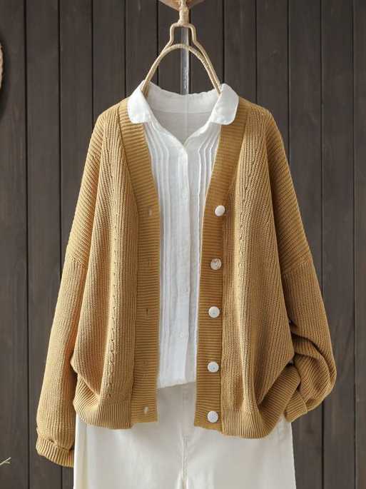 Vintage Solid Long Sleeve Cardigan