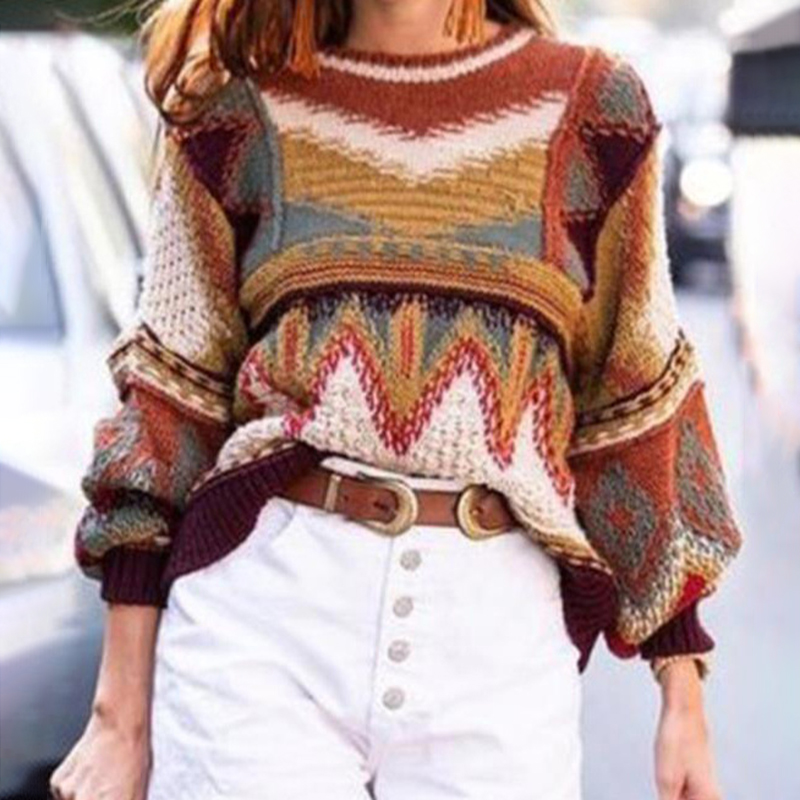 Vintage Geometric Long Sleeve Sweater
