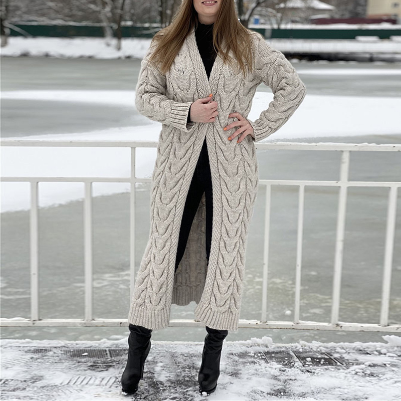 Loose Stretch Hemp Thick Knit Cardigan