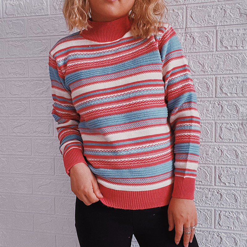 Vintage Long Sleeve Turtleneck Striped Sweater